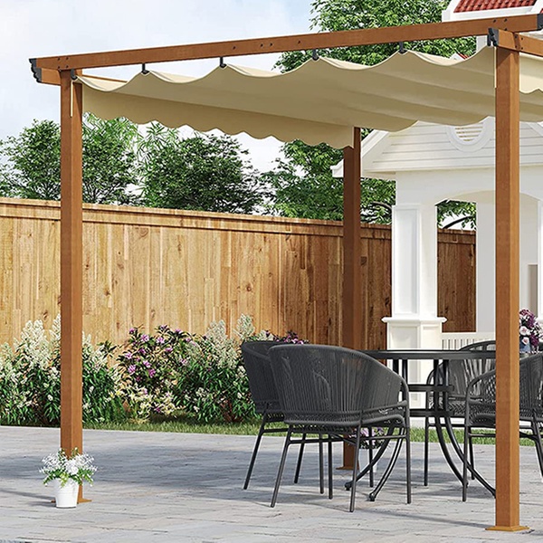 Designed to provide shade on sunny days, this outdoor pergola features an adjustable top canopy and durable materials