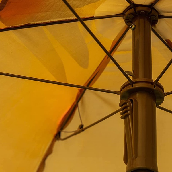 - Adjustable six-bone sun umbrella provides shade on hot sunny days