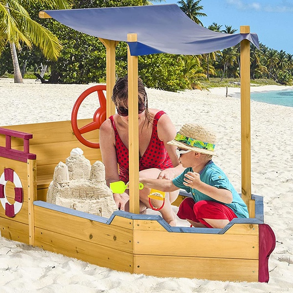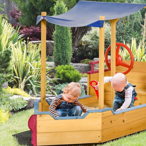 Designed like a ship, this sand pit sparks imaginative adventures while providing a safe play environment for little pirates