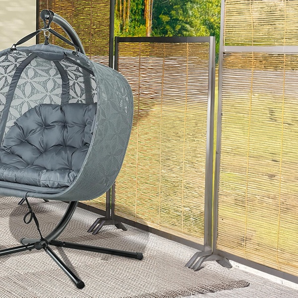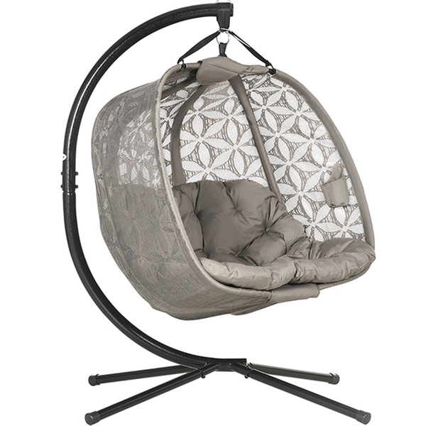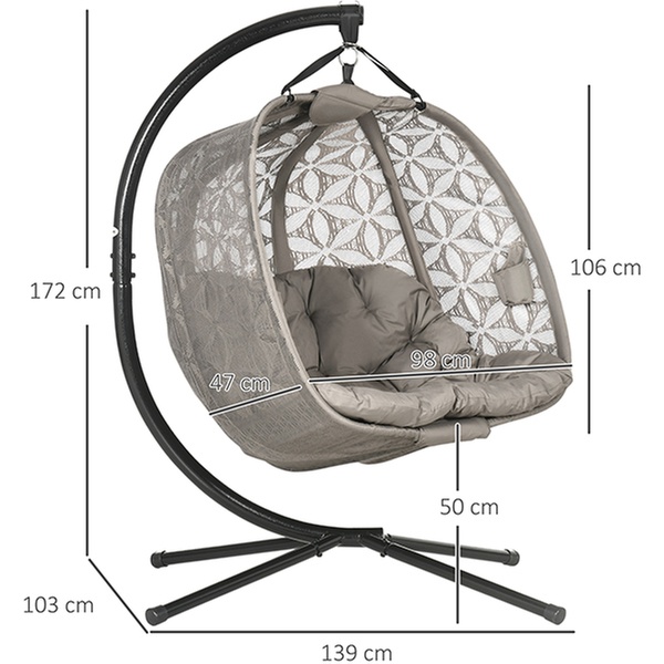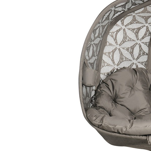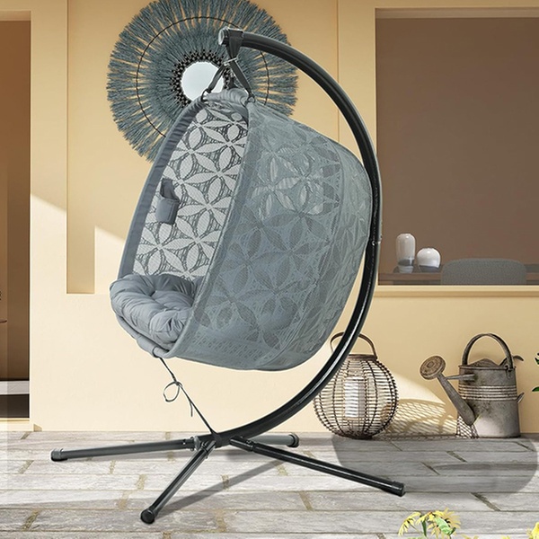 Designed with a two-seater layout, this hanging chair features a spacious cushion for comfort, ideal for relaxing with a friend