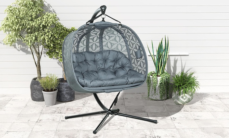 Today's Groupon offers Outsunny Outdoor Double Hanging Chair with Cushion, distributed by MHstar UK Ltd.