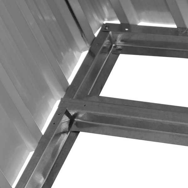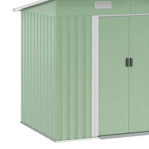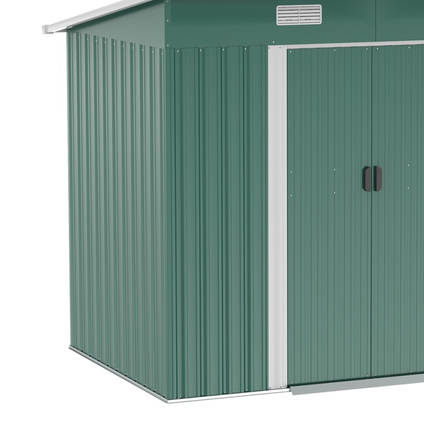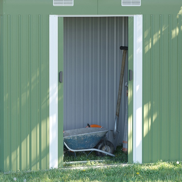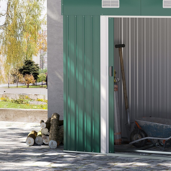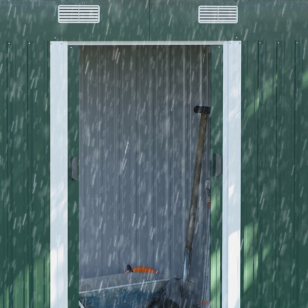 Transform outdoor spaces effortlessly with a freestanding storage shed featuring robust corrugated metal and smart air vents for reduced mould