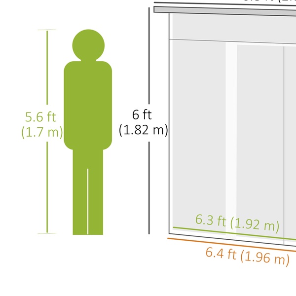 - Dimensions: 6.8ft x 4.3ft, providing ample storage for garden tools, furniture, and other equipment