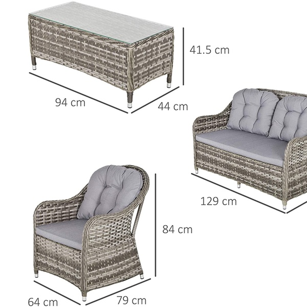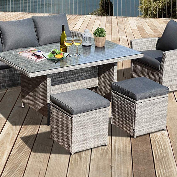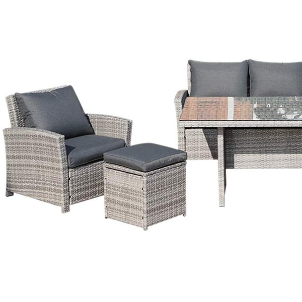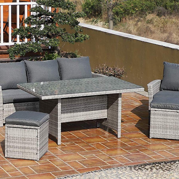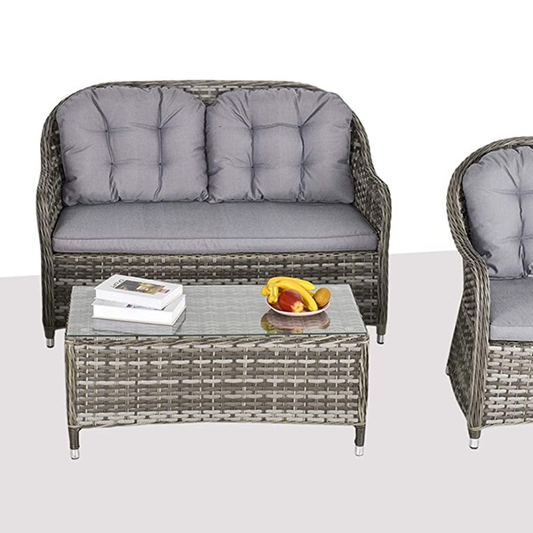 - Material used: PE rattan, tempered glass, aluminium pipe, polyester cloth, 25D sponge