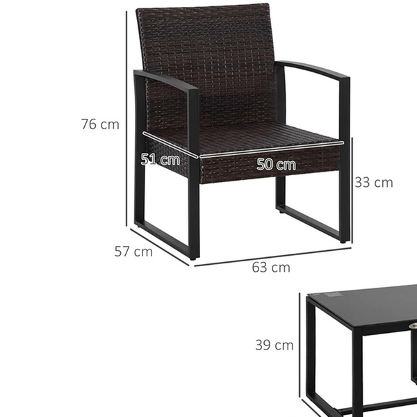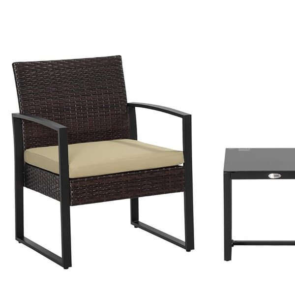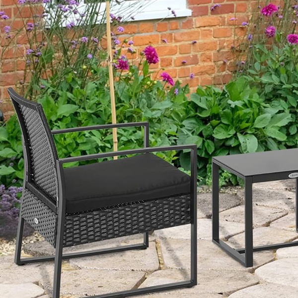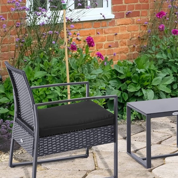 Crafted with hand-woven PE wicker and a sturdy metal frame, this garden bistro set combines style and durability for outdoor relaxation