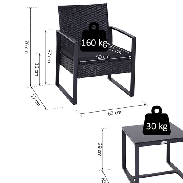 - Chair weight capacity: 120kg; table weight capacity: 30kg