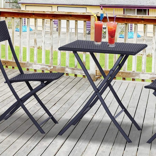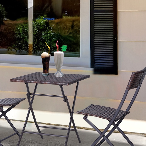 Crafted from resilient PE wicker, this bistro set withstands the elements while bringing style to one's outdoor space