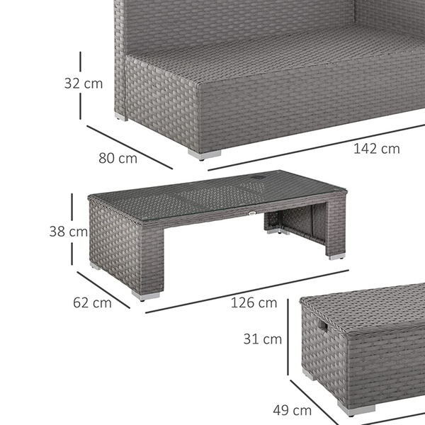 - Colour: mixed grey rattan with grey fabric for a modern look