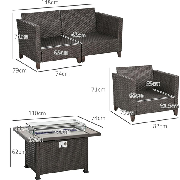 This Outsunny garden furniture set features a fire pit table with a powerful 50,000 BTU heat output and comfortable seat and back cushions for cosy evening relaxation