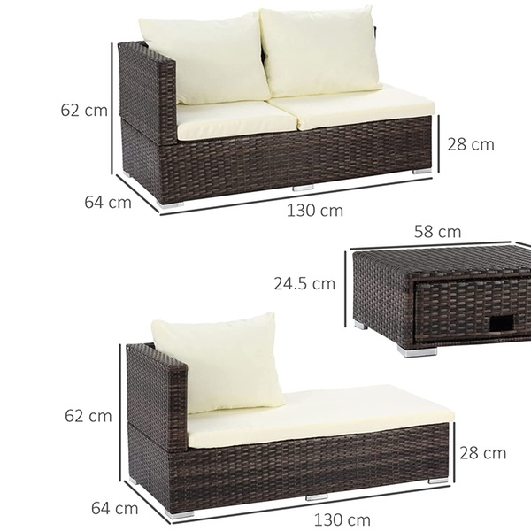 Outsunny 3 Piece Rattan Garden Furniture Storage Sofa Set
