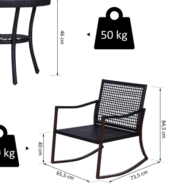 Comprising two rocking chairs and a coffee table, this set can be an ideal addition to garden patios