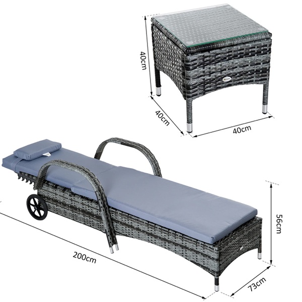 Lounger size: 200 (L) x 73 (W) x 103 (H) cm