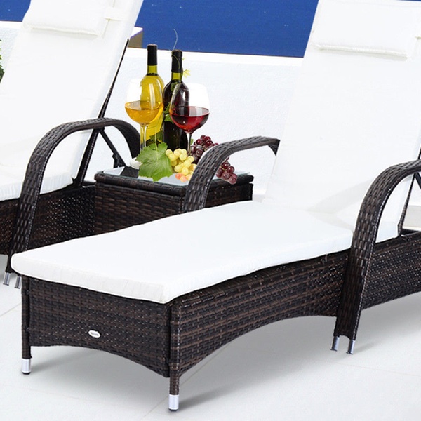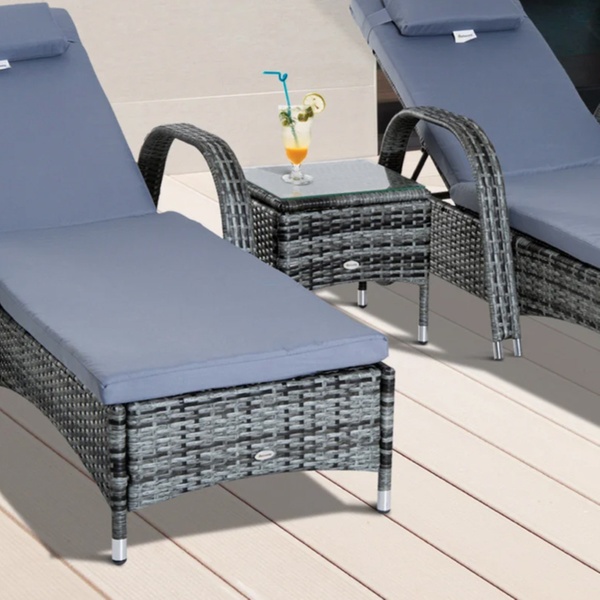 This Outsunny set of two sun loungers with a table can be an ideal addition to the garden, patio, park, poolside and more