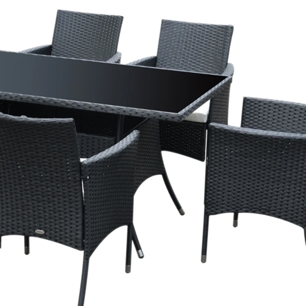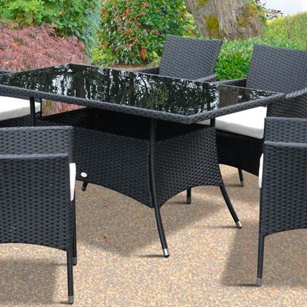 Today's Groupon offers Outsunny Black Seven-Piece Rattan-Effect Dining Set, distributed by MHstar UK Ltd..