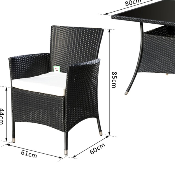 - Chairs: 61cm (L) x 60cm (W) x 85cm (H)