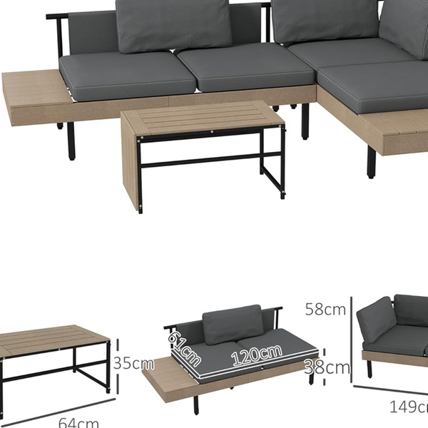 - Weight capacity: sofas support up to 240kg, coffee table up to 50kg
