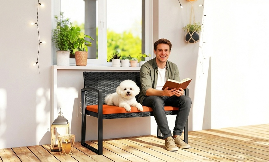 Today's Groupon offers Outsunny 2-Seater Rattan-Effect Garden Bench with Cushioned Seat, distributed by MHstar UK Ltd.