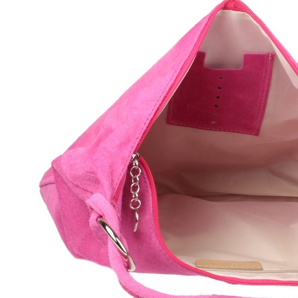 Ideal to complement most casual outfits, this suede shoulder bag is spacious enough to store everyday essentials