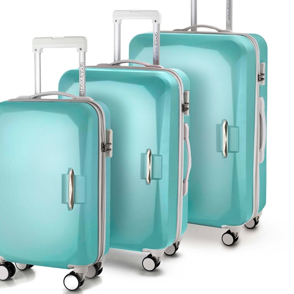 Available in four fetching colours, this three-piece luggage set is ideal for both weekend trips and longer holidays