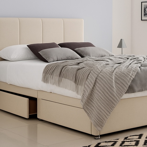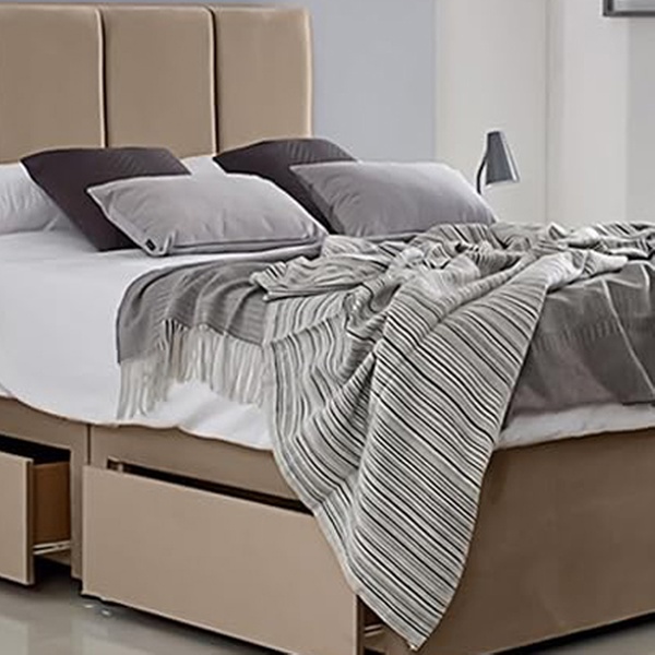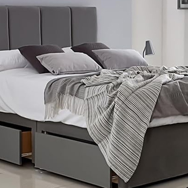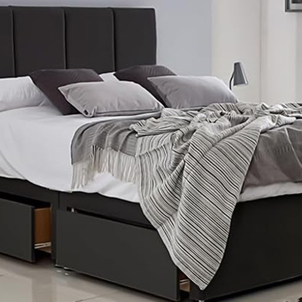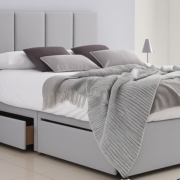 Upgrade your bedroom with this luxury panelled divan bed set, featuring a plush 20'' upholstered headboard, supportive memory foam sprung mattress, and optional storage drawers ? combining comfort, style, and practicality for the ultimate sleep experience.