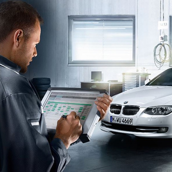 Technicians complete a list of checks on Class IV BMW and MINI cars to ensure roadworthiness at this main BMW retailer
