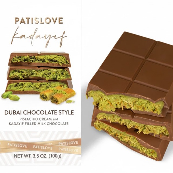 - Triple Texture: Features layers of smooth milk chocolate, rich pistachio cream, and delicate, crunchy kadayif pastry strands (also known as knafeh).
