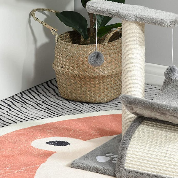 - Robust particle board structure with sisal ropes and soft faux fur