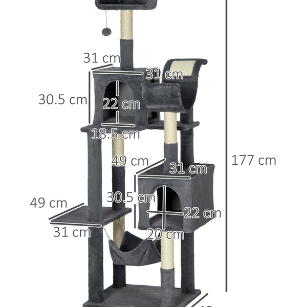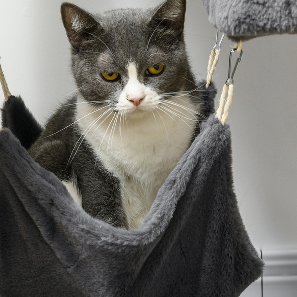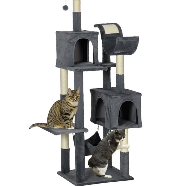 Designed for climbing and scratching, this multilevel cat tree features cozy hideaways and perches for playful cats to enjoy