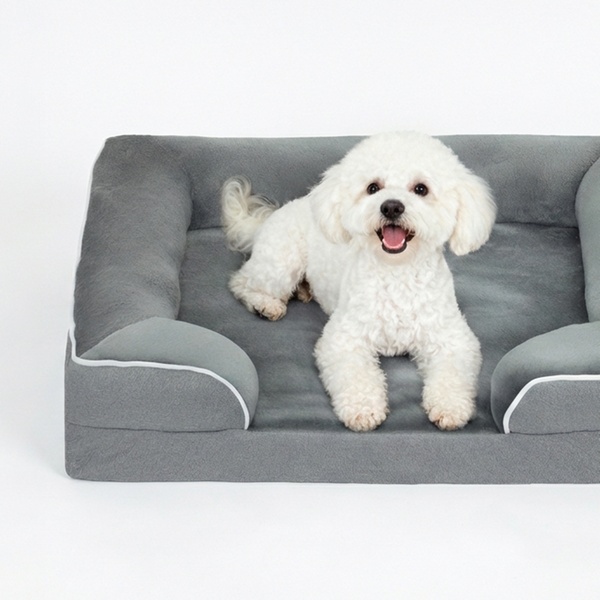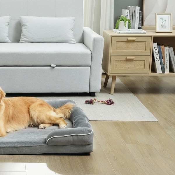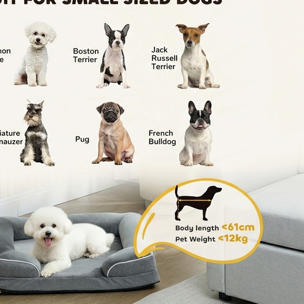 - Cooling gel memory foam provides pressure relief and lasting comfort* Three-sided bolsters create a calming, supportive sleep space • Overall size: 91.5cm (L) × 68.5cm (W) × 16.5cm (H) • Sleeping area: 71.5cm (L) × 48cm (W) • Thick 7cm cushion prevents cold from seeping through • Zipped, washable cover allows easy maintenance • Non-slip bottom ensures stability on slippery floors • Suitable for pets up to 22.5kg, body length under 71cm • No assembly required