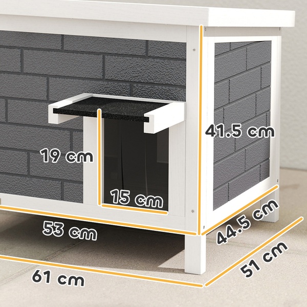 - Cat house: 41.5 cm (H) x 53 cm (L) x 44.5 cm (W)