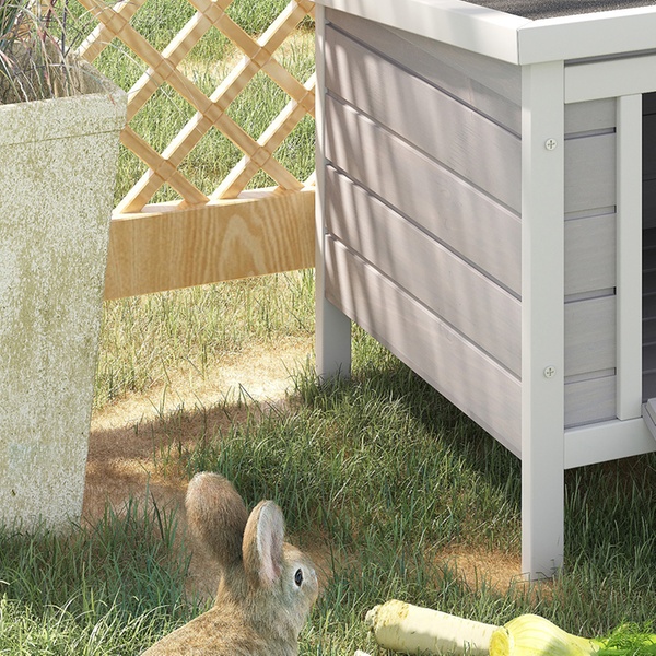 Pawhut Wooden Rabbit Outdoor Hutch (Grey)