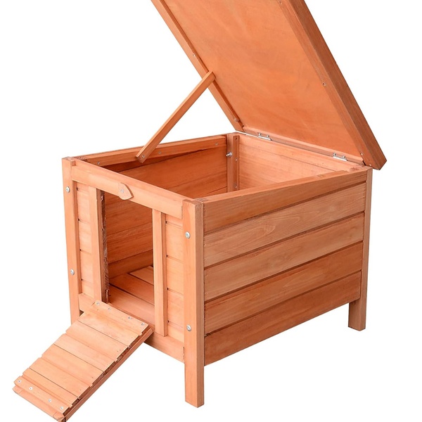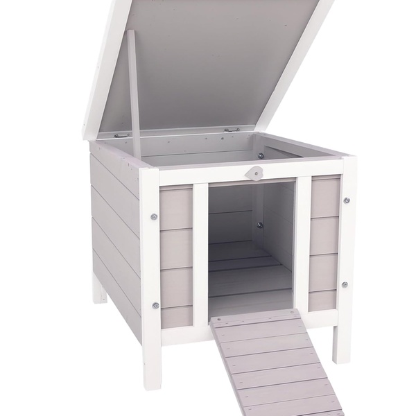 A cosy retreat for small pets, featuring a secure design with easy-clean, openable roof and ramp access for effortless living.