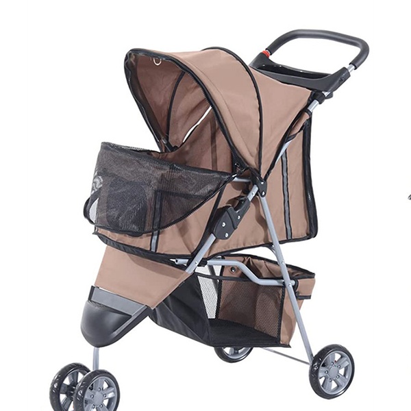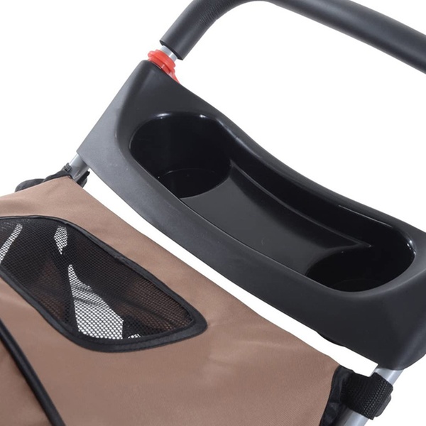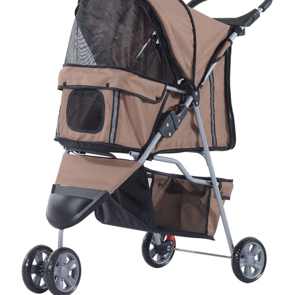 Intended for older pets that may require help at longer distances; this stroller includes a storage pocket for food or pet toys