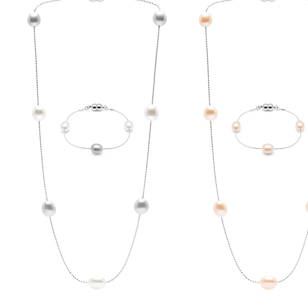 Featuring genuine freshwater pearls and a secure magnetic ball clasp this set is available in three distinctive colours