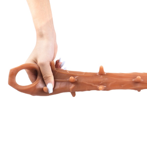 Featuring a spiky loop, this sleeve comes with an optional vibrator and acts as an extender to the penis by increasing its length and girth