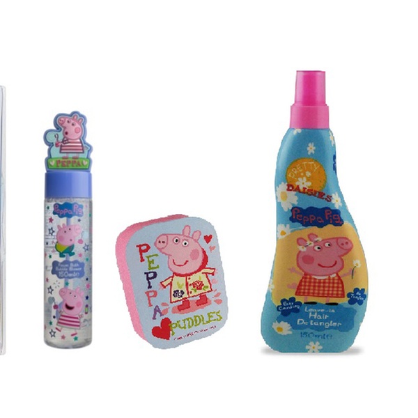 Ideal for Peppa Pig fans, this bundle includes a sponge, hair detangler, bubble blower and shower gel or 5-day shower gel
