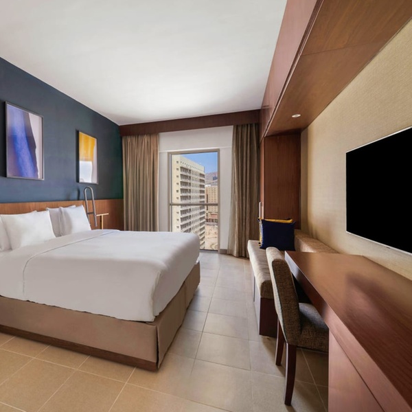 Located in Mecca, just a short walk from the city's holy sites, the 4-star voco Makkah an IHG Hotel is an elegant establishment that welcomes you for a spiritual retreat or cultural exploration. This contemporary and luxurious hotel offers refined rooms suitable for a family, couple or group of friends. It also has several restaurants where you can sample exceptional cuisine inspired by local and international recipes. A haven of relaxation, this 4-star hotel is the perfect base for exploring the Holy City.
