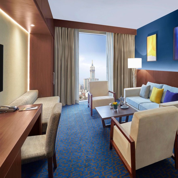 You can spend your days on pilgrimage or relaxing in the hotel's lounges. There are several areas where you can take a break, have a cup of tea or enjoy a gourmet snack. You can also use the free Wi-Fi to plan your itinerary, and the hotel staff can recommend excursions or a local guide to discover the most emblematic places in Mecca, starting with the Masjid al-Haram Mosque.