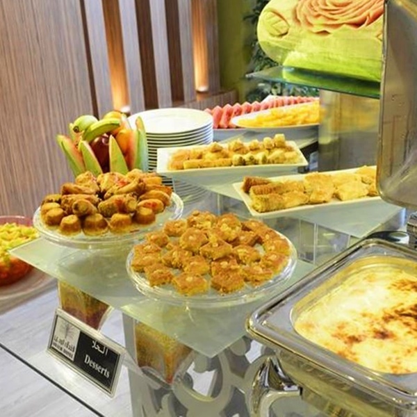 For breakfast, the restaurant serves a continental buffet, as well as typical dishes from the Arabian Peninsula. For lunch and dinner, succumb to the deliciously spicy dishes, for a change of culinary scenery.