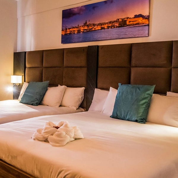 This standard double room has been carefully designed with space-saving storage. As you step out on your balcony, you will be able to see St. Paul's Bay in all its splendour.