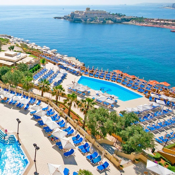 The five-star Corinthia Saint George's Bay is conveniently located in the lively neighborhood of St Julian's under the bright sunshine of the island of Malta. The modern building is arranged around a garden decorated with palm trees and several swimming pools. Other activities and entertainment options are also available for a successful holiday.