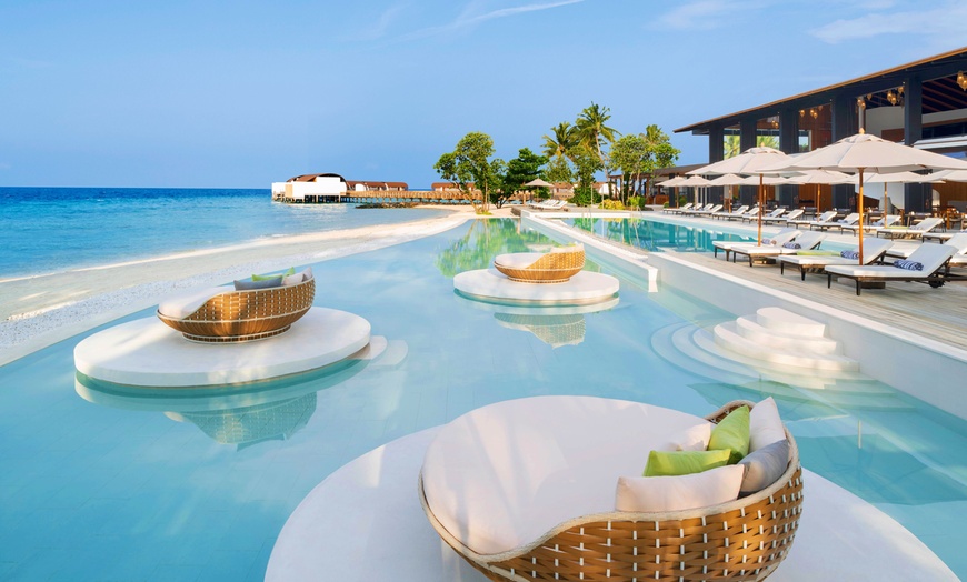 Nestled in the UNESCO reserve of Baa Atoll, The Westin Maldives welcomes you for breakfast or half-board on the shores of the Indian Ocean. In perfect harmony with its natural surroundings, your 5* resort offers luxury suites and villas on the lagoon's edge. To ensure that your stay is as indulgent as possible, your hotel features a fitness center with spa and fitness studio, a swimming pool and private beach, three restaurants and a friendly bar.