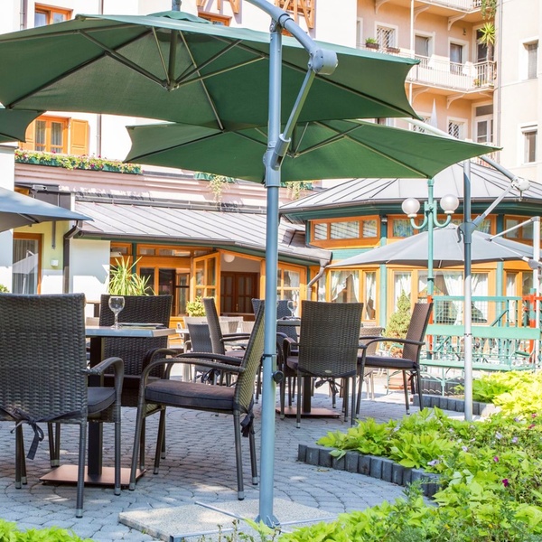 Every morning, a hearty buffet breakfast awaits in the dining room. Choose from a wide range of pastries, meats, seasonal fruit, fruit juices and more. At the end of the day, enjoy relaxing with a drink on the terrace.