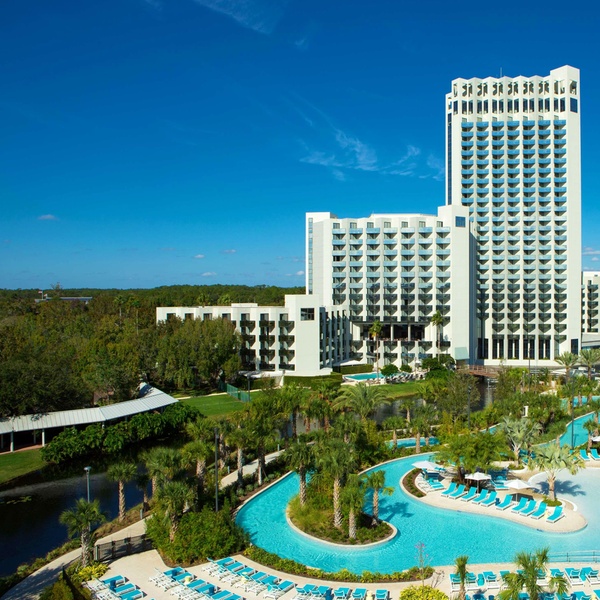 Treat yourself to an unforgettable family holiday by staying at the Hilton Orlando Buena Vista Palace - Disney Springs Area! This four-star hotel enjoys a prime location by the famous Walt Disney World Resort parks. The rooms, almost all of which have a balcony, are suitable for three or four people. Parents can keep fit in the fitness centre while children can have fun in the swimming pool with a river where you can go tubing. The hotel also has an adult pool, and various bars and restaurants for dining in. A shuttle bus takes you throughout the day to the various theme parks.