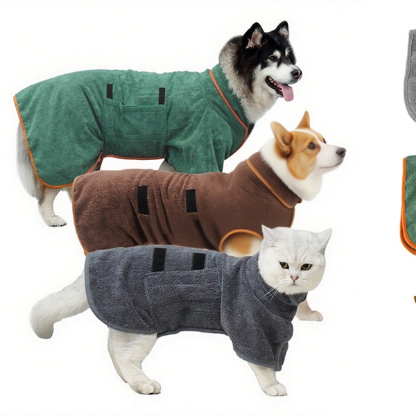 This ultra-absorbent microfibre pet bathrobe keeps furry friends warm and dry after baths or rainy strolls, ideal for post-paw-dicures
