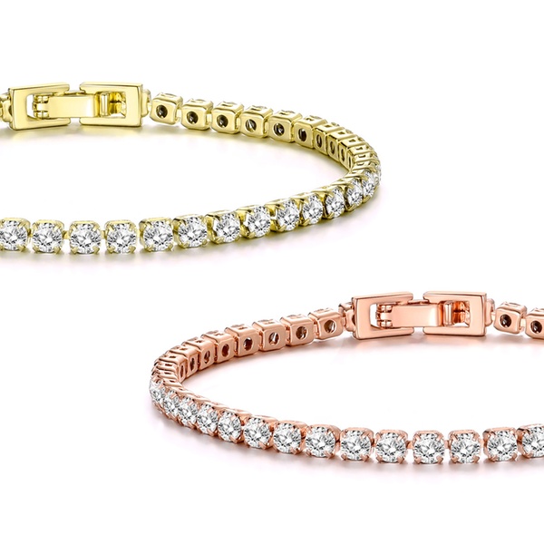 Adorned with crystals from Swarovski®, this tennis bracelet comes in a gift pouch