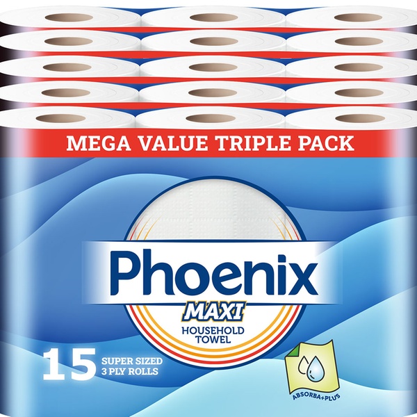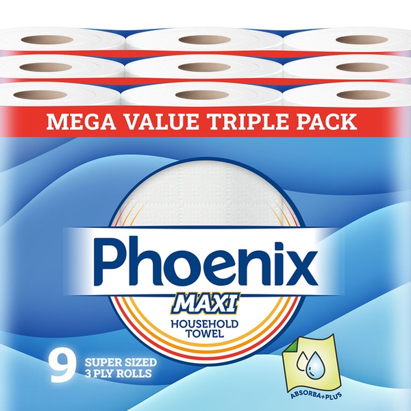 - Strong and ultra-absorbent 3-ply kitchen towels designed for efficient household cleaning