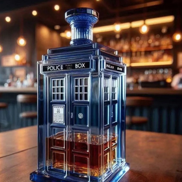 Add a touch of vintage charm to any bar with this whisky bottle, designed like a classic phone booth for a standout display.