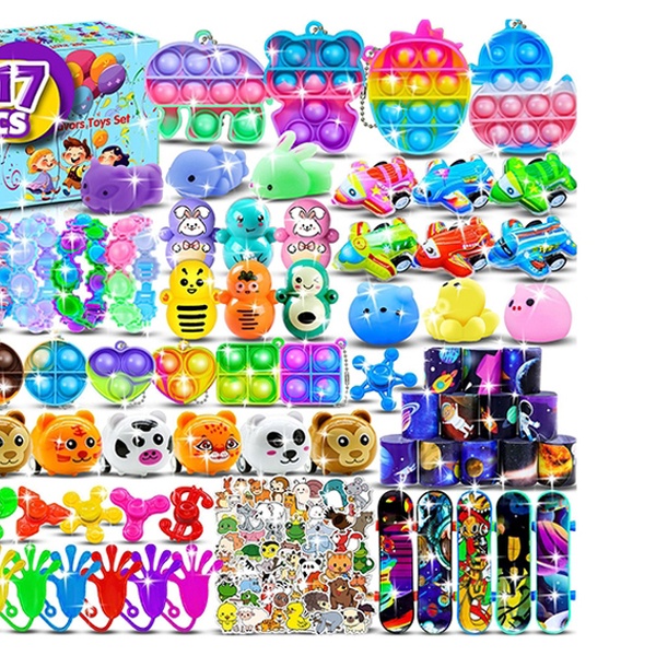 - Extensive 117-piece set offering a wide variety of fidget toys for fun, stress relief, and focus improvement