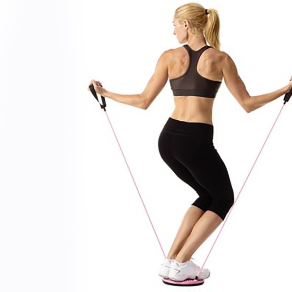 Put a new spin on the workout routine with this twist board and a resistance tubing; great for all fitness levels